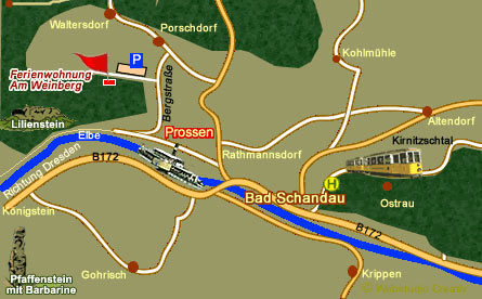 Wenn Sie mit Navi fahren, geben Sie bitte: Bergstr. 26 in Prossen ein, damit kommen Sie gut ans Ziel. |